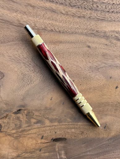 Choose from a hand-curated list of available resin, wood, or hybrid blanks and kit colors to design a “truly yours” pen. Options coming soon. Unless otherwise noted, ink color is black.